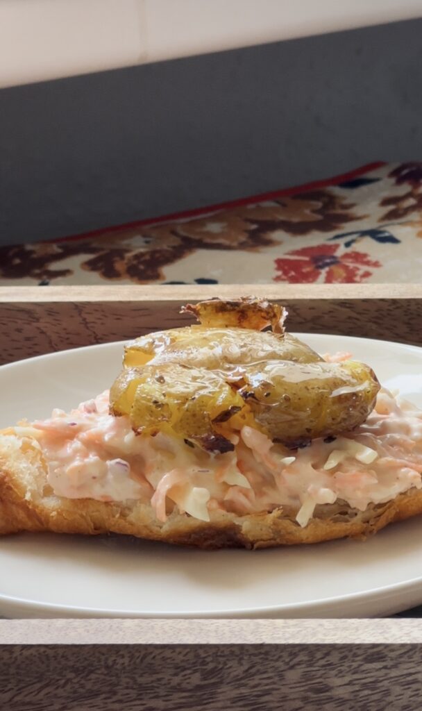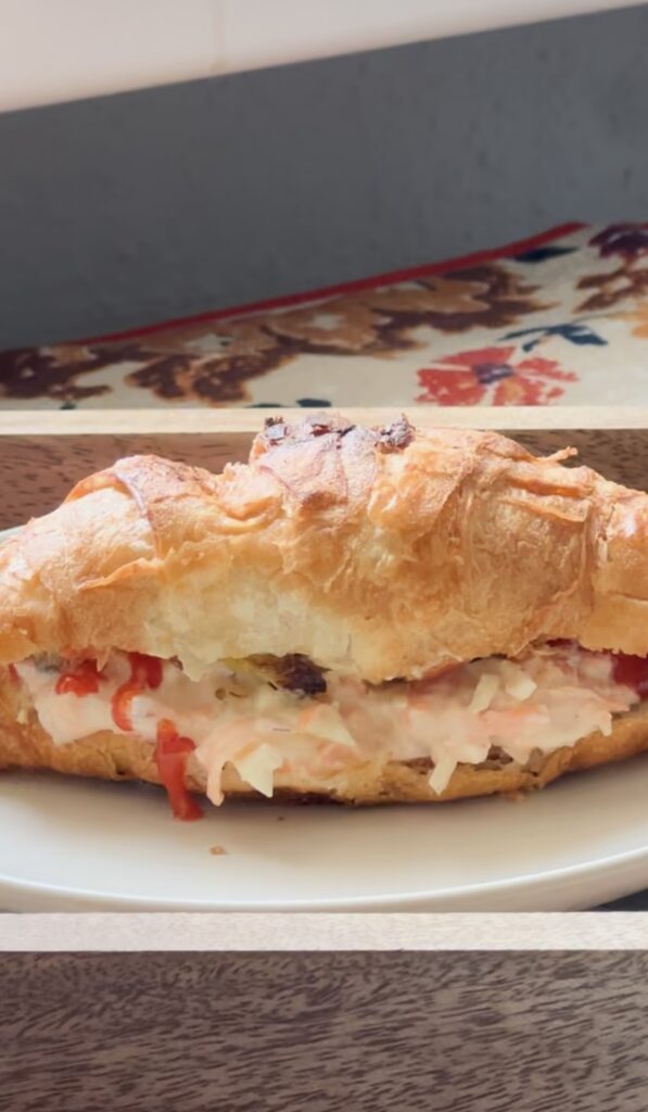 This croissant sandwich is a wonderful way to enjoy French cuisine with an American twist. The combination of buttery croissants with the fresh, tangy coleslaw and crispy baked potatoes creates a unique flavor profile that is both comforting and exciting. It’s a dish that brings together the best of both worlds, offering a gourmet experience that is simple to prepare and enjoyable to eat.